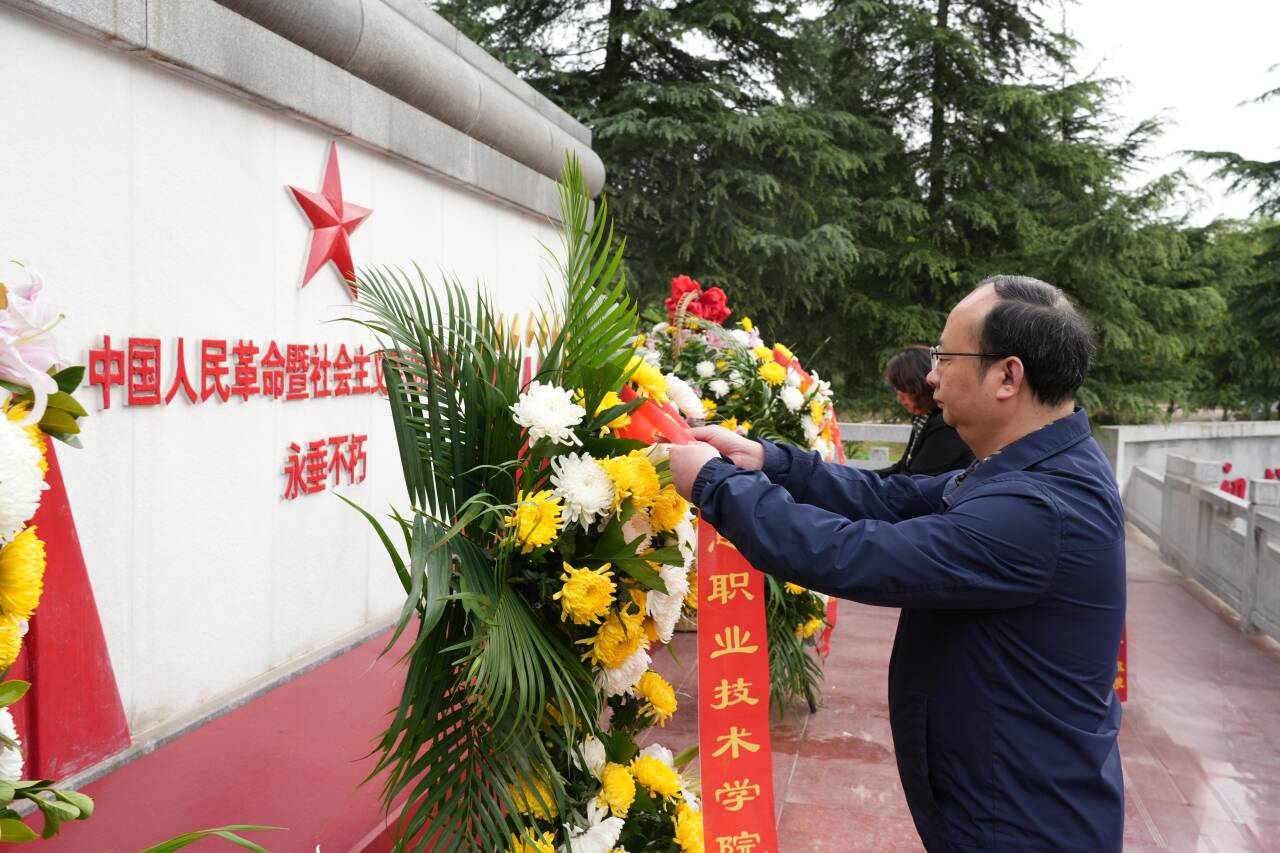 面向庄严肃穆的烈士纪念碑,全体师生整齐列队、神情肃穆、矗立瞻仰,齐唱国歌,向为民族解放和国家建设英勇献身的烈士默哀致敬并行鞠躬礼;师生代表敬献了花篮;随后,马克思主义学院教师王明月讲授了思政微课;现代制造学院学生代表郑鑫磊分享了思想感悟。