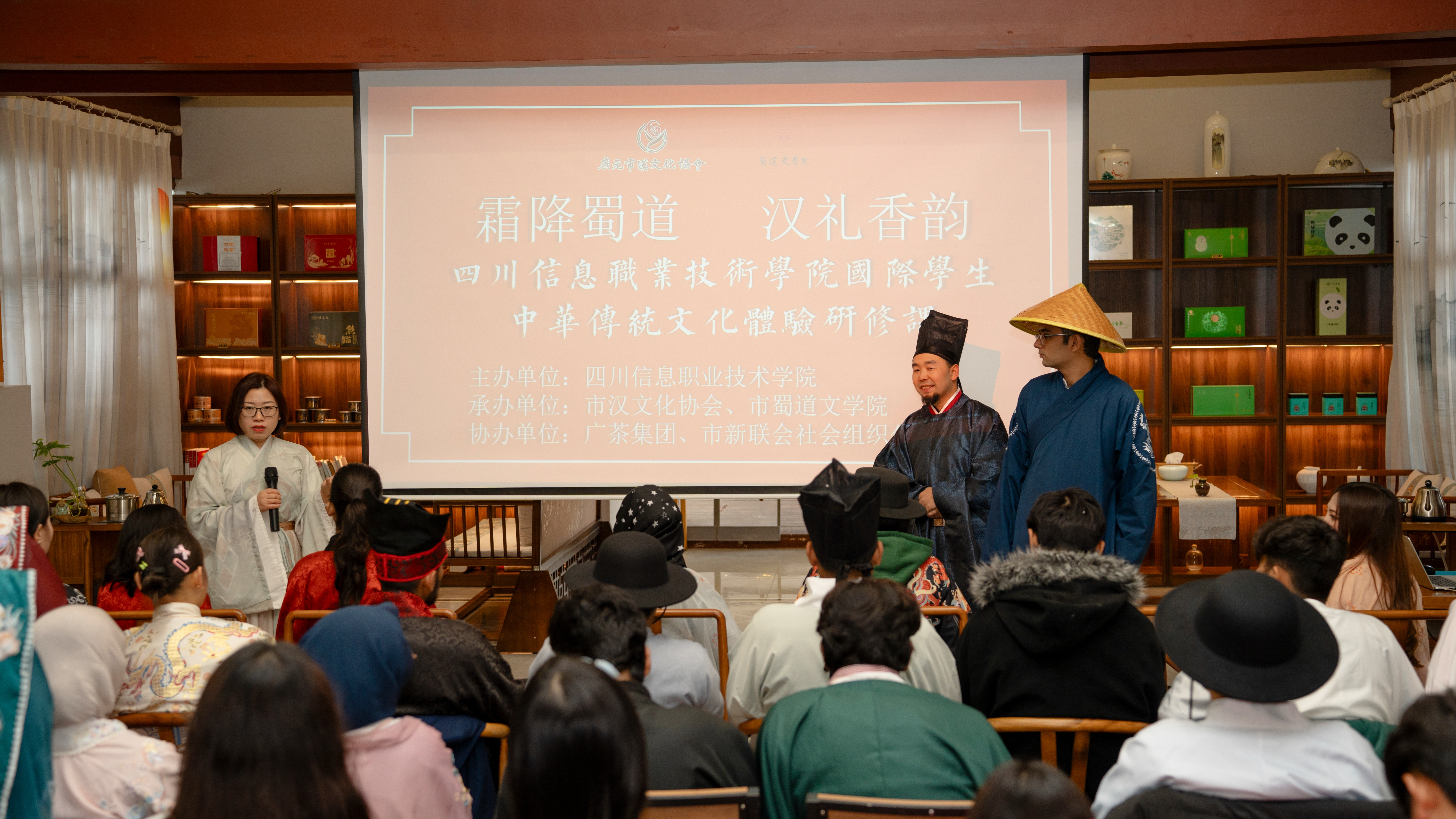 10月24日上午,由人文学院主办的“霜降蜀道,汉礼香韵”国际学生中华传统文化体验活动在广元市汉文化协会研习基地举行。