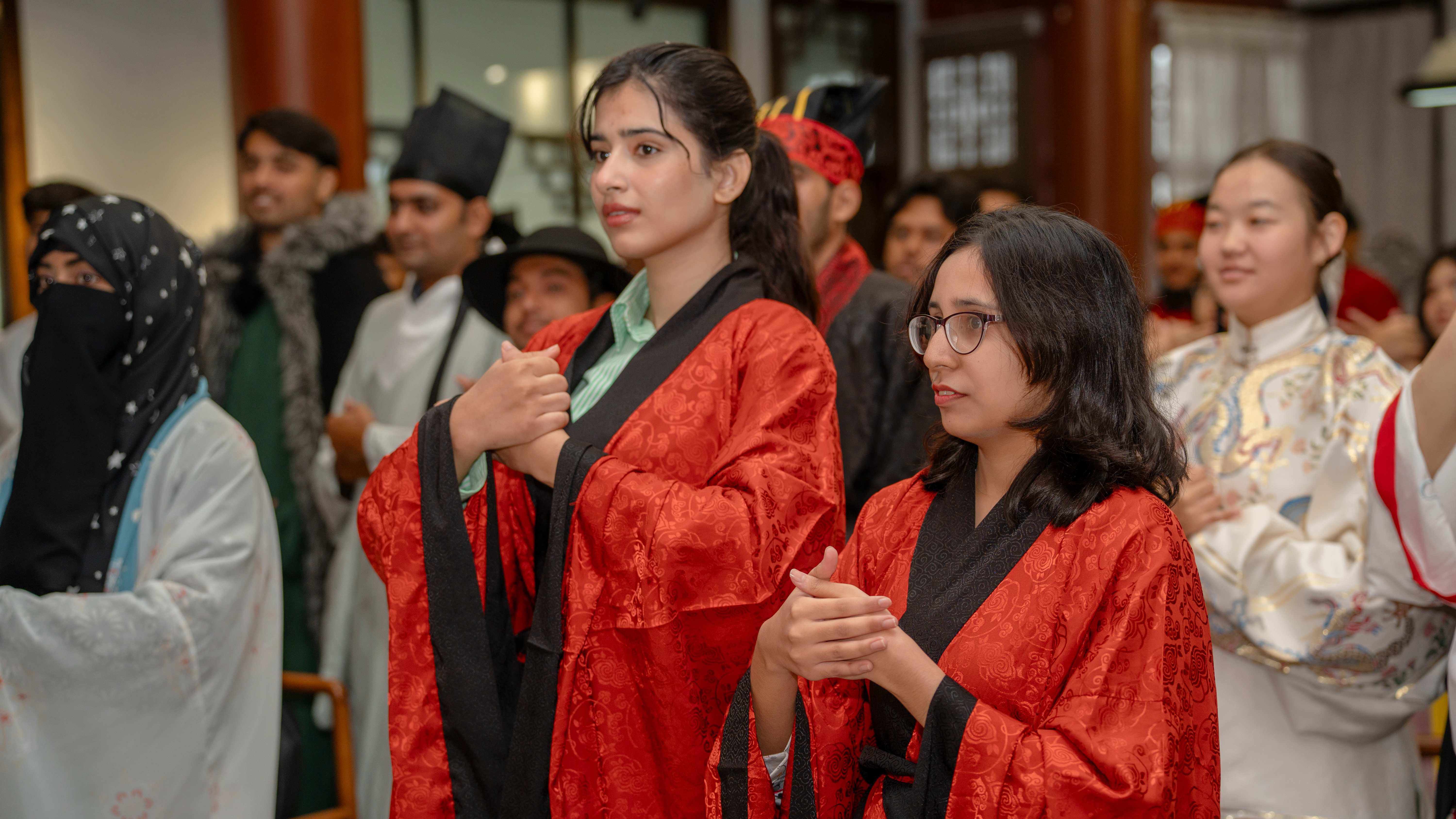 活动现场,来着巴基斯坦、印度尼西亚、孟加拉国、老挝、塔吉克斯坦、蒙古的47名留学生着汉服、学汉礼、习香道,沉浸式感受中华优秀传统文化的独特魅力。