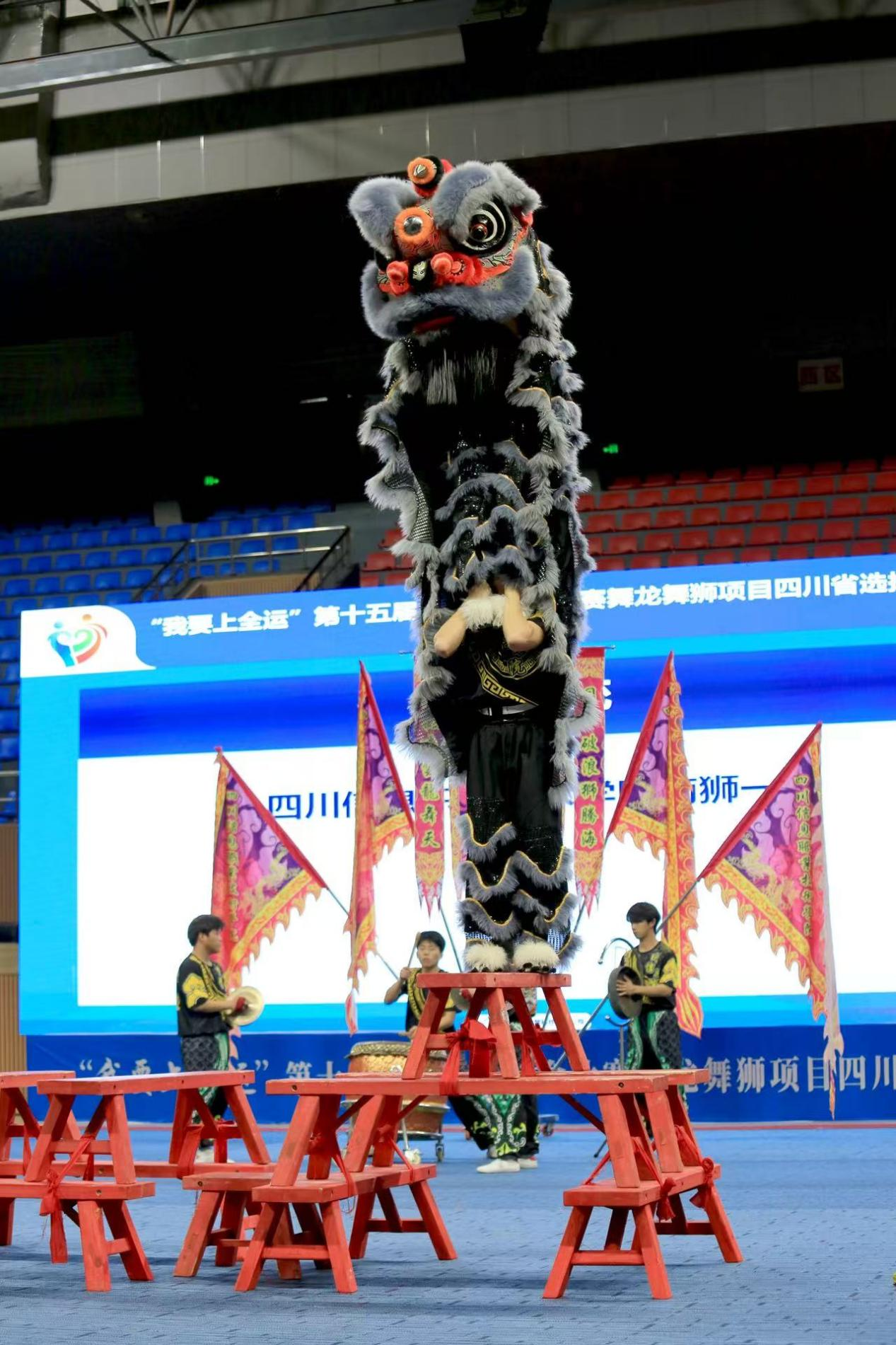 4月12日至13日,由四川省体育局、四川省体育总会主办,四川省社会体育指导中心、四川省龙狮运动协会、乐山市体育局承办的“我要上全运”第十五届全运会群众比赛舞龙舞狮项目四川省选拔赛在乐山市体育中心举行。经过激烈角逐,学院龙狮队凭借扎实的基本功在此次比赛中取得传统南狮第二名、第六名,障碍南狮第二名的优异成绩。