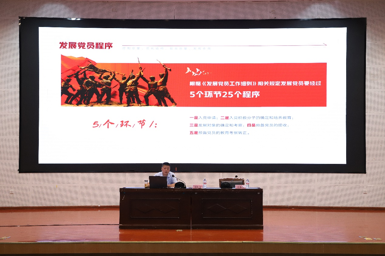培训会上,相玉见以《发展党员工作中的程序规范与质量提升》为题,对发展党员工作的5个环节、25个程序的制度规定,执行要求及注意事项等作了深入细致地剖析讲解,为学院发展党员工作中精准把握工作规范、规避执行偏差提供了专业指引。