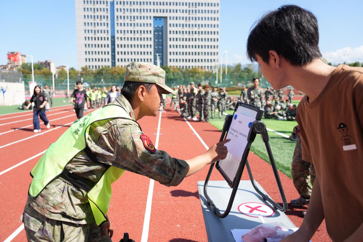 在应急疏散演练中,火情信号发出后,军训教官、辅导员、宿舍管理员、青年志愿者及校卫队员迅速就位,依预案分工协作;全体新生则严格遵循“弯腰低姿、捂鼻护口、靠右有序行进”的疏散准则,沿就近安全通道快速有序疏散至指定安全区域。随后,现场医务人员针对突发伤情进行了处置,安全转运了伤员。