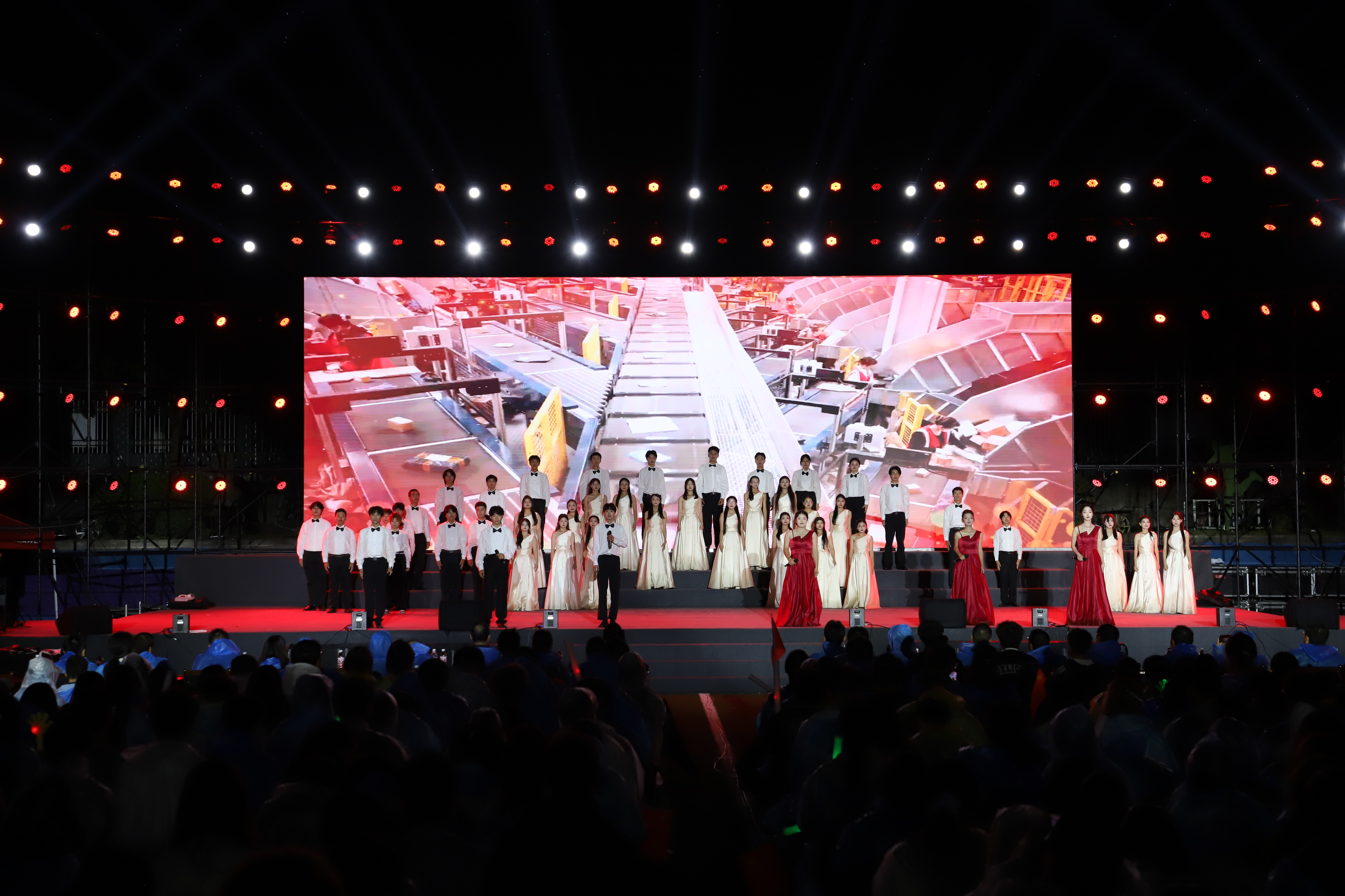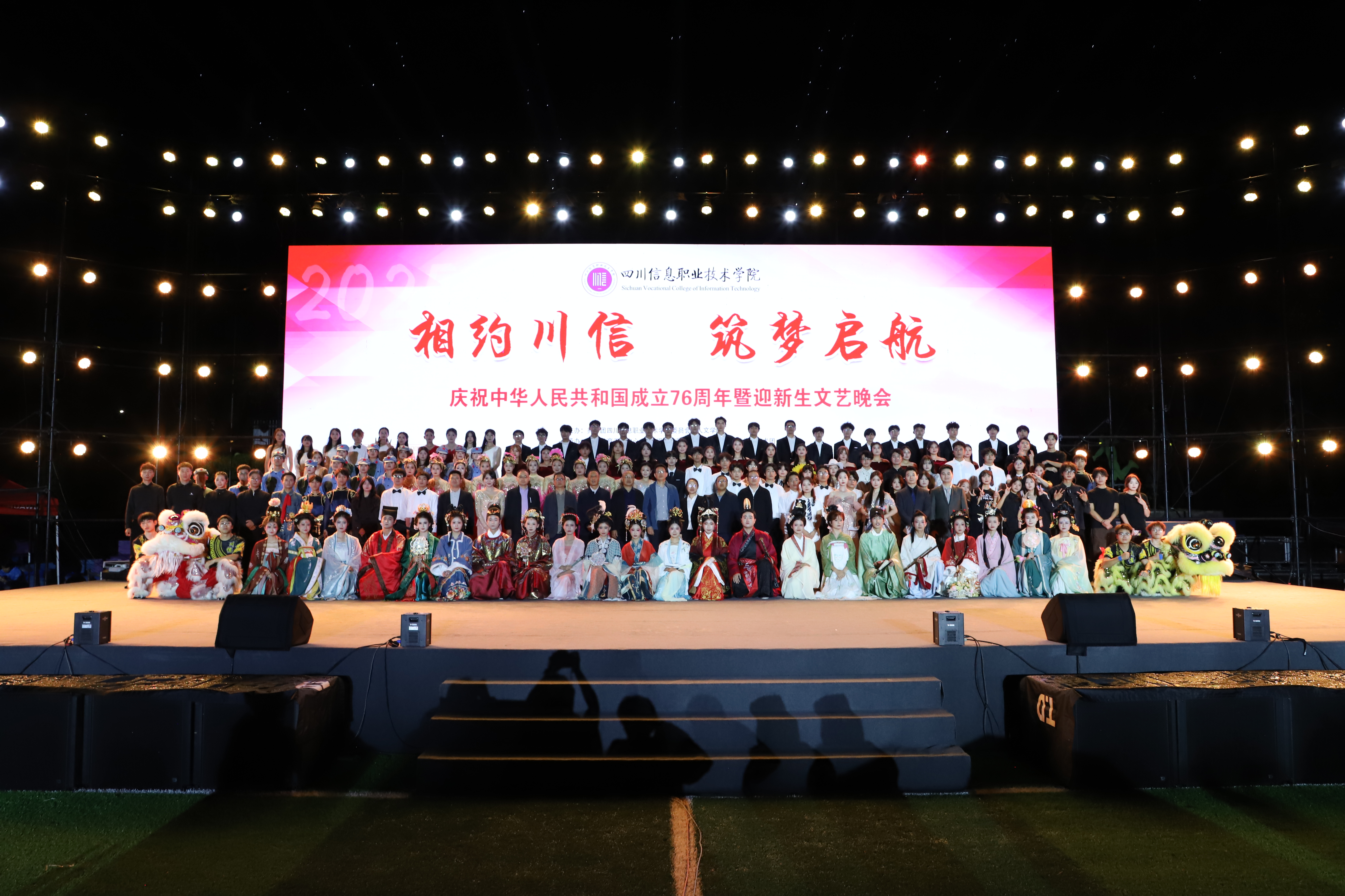 华灯绽放、欢声响彻,秋风送爽、丹桂飘香,9月28日晚,学院《相约川信 筑梦启航》——庆祝中华人民共和国成立76周年暨迎新生文艺晚会在雪峰校区田径场举行。党委副书记刘凯及在家党委领导班子其他成员,中国电信广元分公司党委委员、副总经理张家荀及校园客户中心副总经理何武,学院相关职能部门及各二级学院负责人、教职员工代表、全体2025级新同学和高年级学生代表近5000人参加晚会。