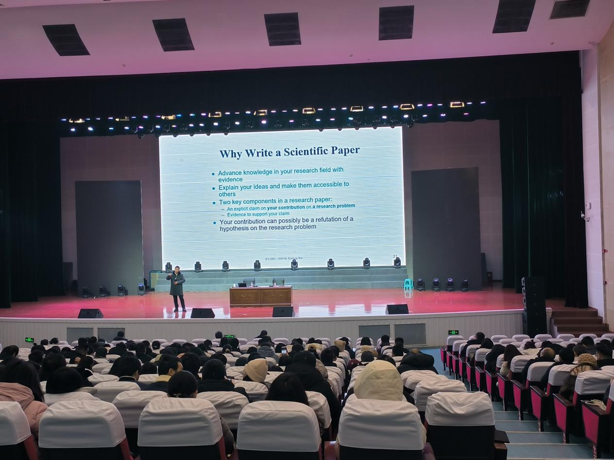 为了提升教师的科研创新能力与学术论文写作水平,推动学科专业高质量发展,1月9日,学院特邀教育部“长江学者”特聘教授、国家特聘专家、IEEE Fellow和AAAS Fellow、合肥工业大学吴信东教授在雪峰校区学术交流中心演艺厅作题为“论文写作与发表能力提升”的专题讲座。本次讲座由党委副书记、院长韩鹏主持。