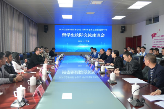交流会上,苍溪职中党委书记曹仕辉致欢迎词。相关负责人介绍了苍溪猕猴桃产业发展现状、农学专业和计算机专业情况。学院国际学生分别就其国家的教育和文化基本情况作交流发言。
