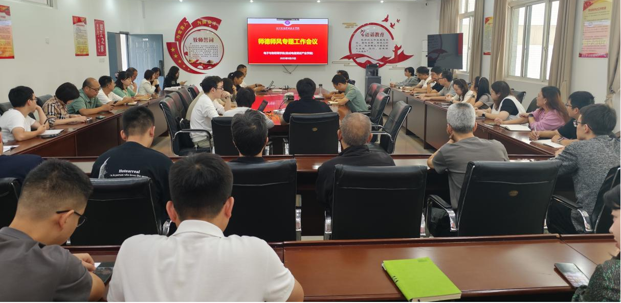 9月25日,电子与物联网学院在雪峰校区电子楼3208会议室召开师德师风专题工作会,该院全体教职员工参加会议,会议由该院党总支负责人张德忠主持。
