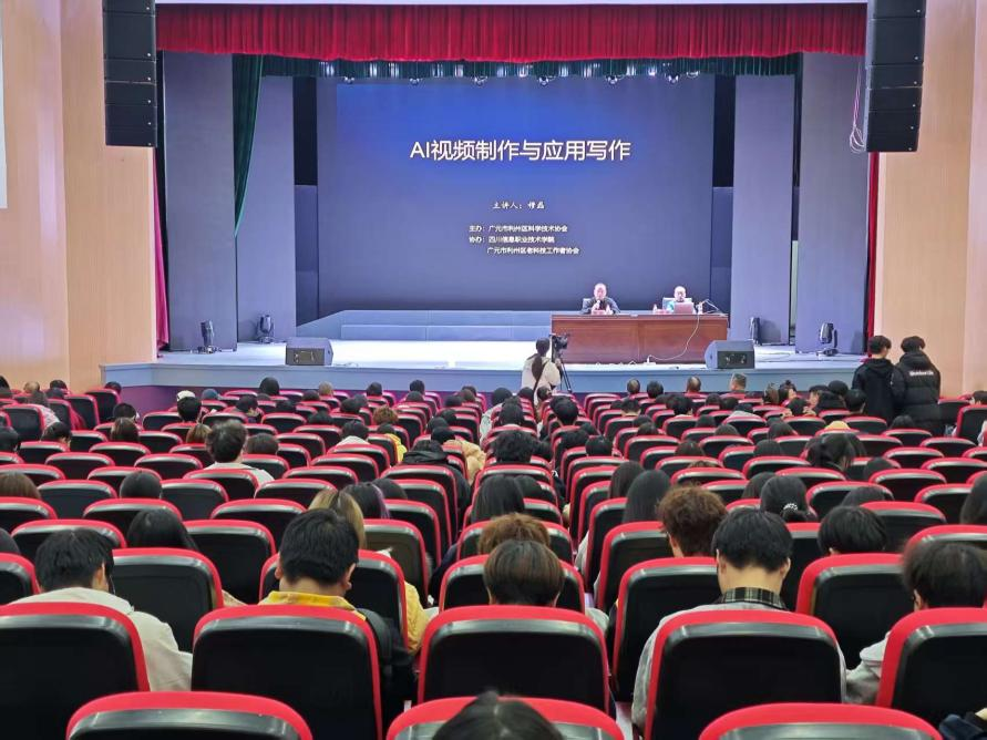 11月13日,由广元市利州区科学技术协会主办,数字经济学院、广元市利州区老科技工作者协会协办的“AI视频制作与应用写作”专题讲座在学院东坝校区大礼堂举行。讲座邀请西南民族大学硕士生导师、北京理工大学博士、电子科技大学博士后、清华大学访问学者穆磊担任主讲,数字经济学院师生代表聆听讲座。