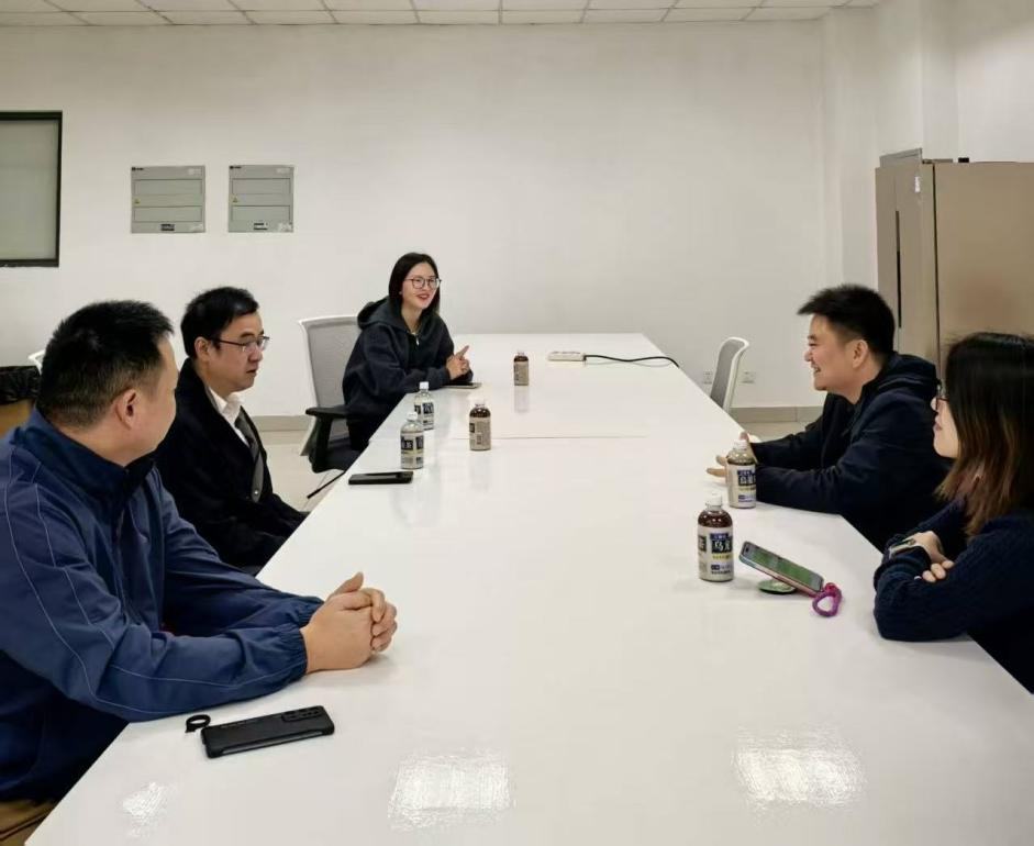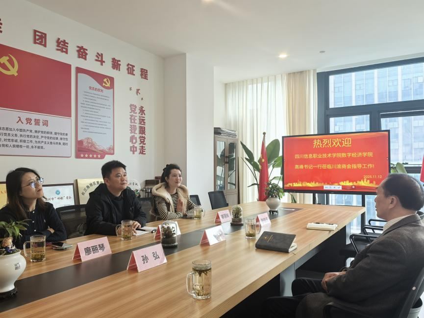 在太仓市川渝商会,高峰与商会主席周耀祥进行了深入交流。周耀祥表示,商会将组织会员单位企业,为学生提供更多优质实习与就业岗位。高峰表示,学院将坚持“立德树人”根本任务,努力为企业培养输送更多高素质技能人才。双方还就共建人才培养中心等合作事宜进行了深入探讨,达成了通过资源共享与优势互补以实现协同发展的合作意向。