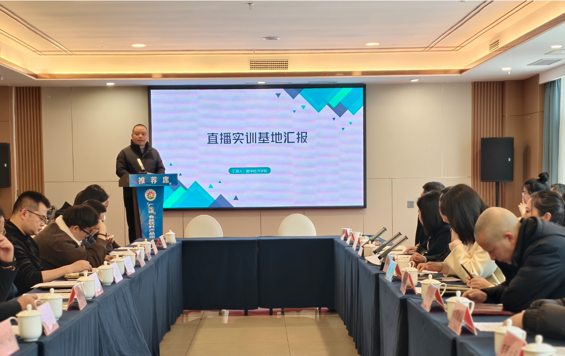 会上,魏鼎介绍了数字经济学院通过“引企入校,产教融合”模式,借助直播电商助力“广元造”产品线上销售的具体实践与阶段成效。魏鼎表示,学院将持续深化政校企合作,依托直播基地,为中小微企业提供数据赋能与人才支撑,助力广元市实现500亿级食品饮料产业集群发展目标。